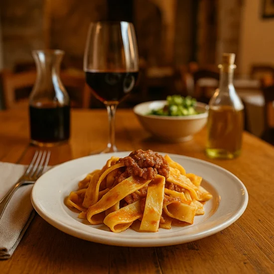 Gusta i sapori genuini della nostra terra nelle osterie e trattorie tipiche: pici al ragù, ribollita, cinta senese e dolci fatti in casa.